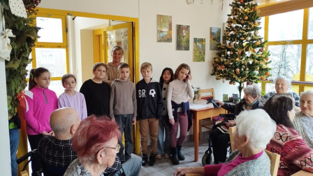 V pátek 12. prosince jsme se s dětmi vypravili na návštěvu do Charitního domu sv. Alžběty na Zelené ulici. Přivítaly nás milé babičky a přidal se i jeden dědeček. Děti si ve škole nacvičily mikulášské a vánoční překvapení. Přednesly babičkám a dědečkovi několik básniček o Mikuláši a blížících se Vánocích – jednu z nich dokonce klienti domova dobře znali, a tak si ji s námi společně zopakovali.