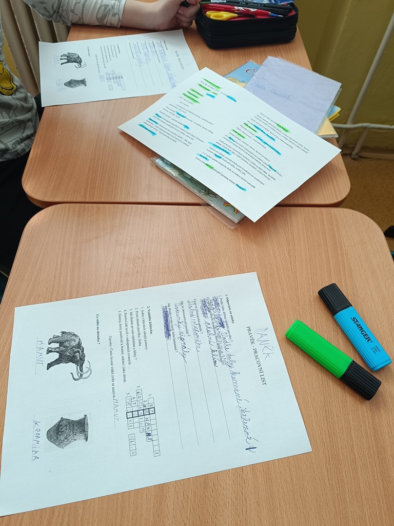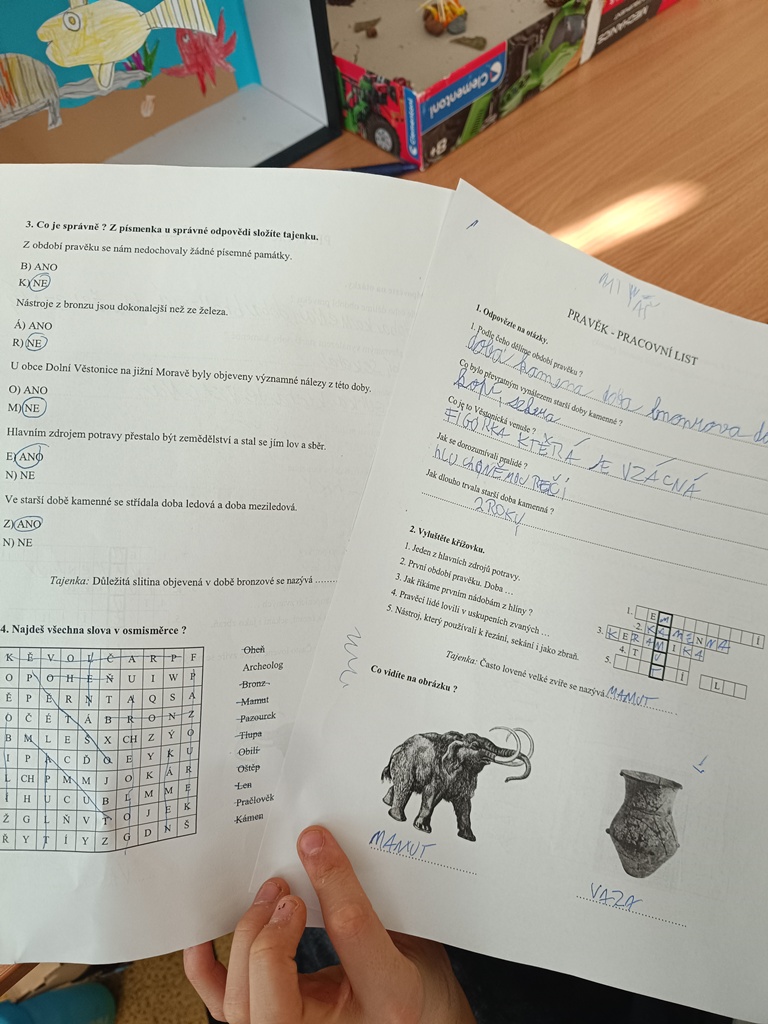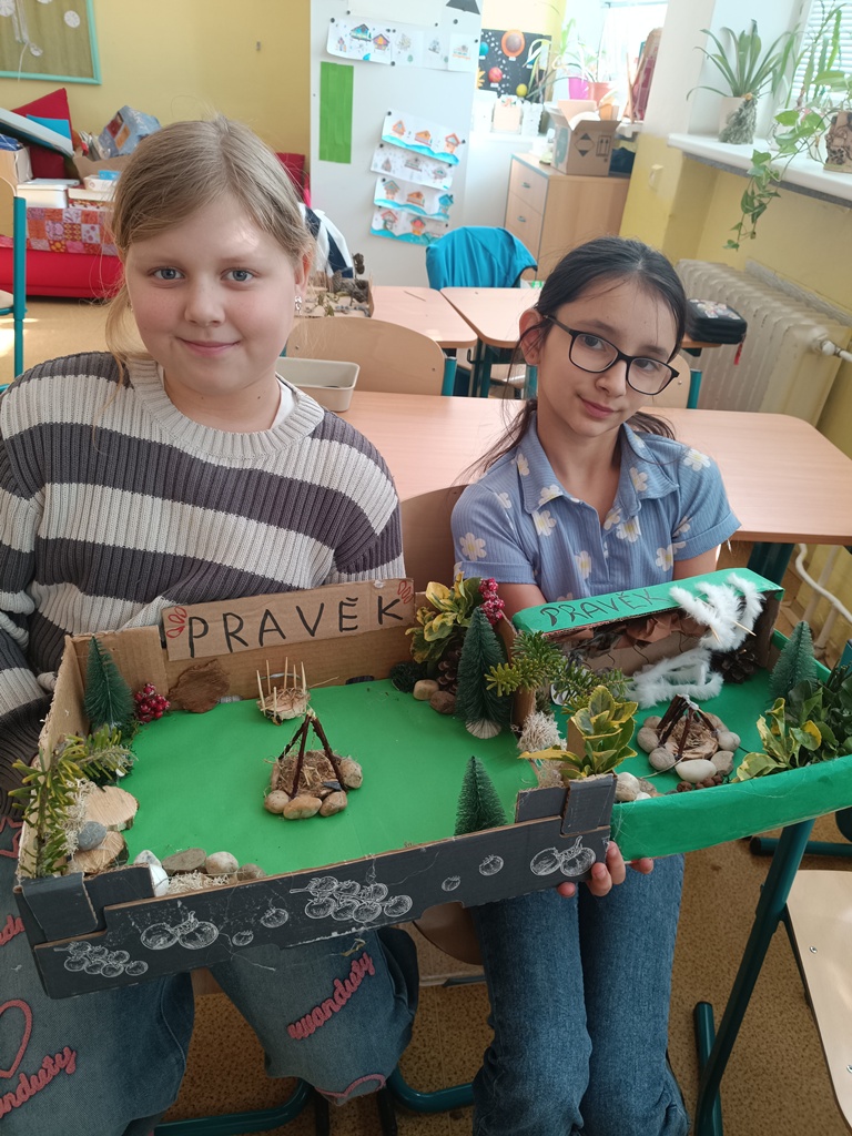 V hodinách vlastivědy jsme se ve 4.A vydali na cestu hluboko do minulosti – až do období pravěku. A protože pouhé čtení v učebnici někdy nestačí, rozhodli jsme se vzít historii doslova do vlastních rukou.