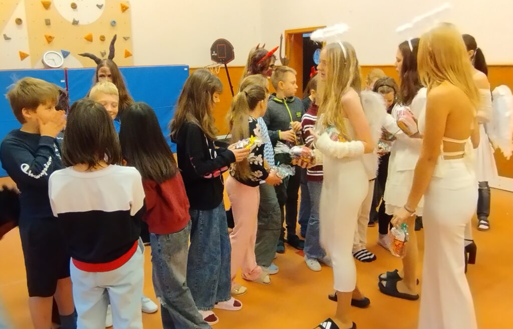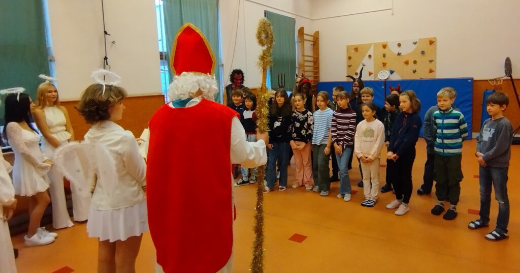 V pátek 5. prosince jsme se s naší třídou vydali na tradiční návštěvu k Mikulášovi. Hned u dveří nás přivítali čerti, kteří pouštěli pořádnou hrůzu. Některé hříšníky dokonce na chvíli strčili do pytle (ale všichni dobře věděli, že je to jen legrace).