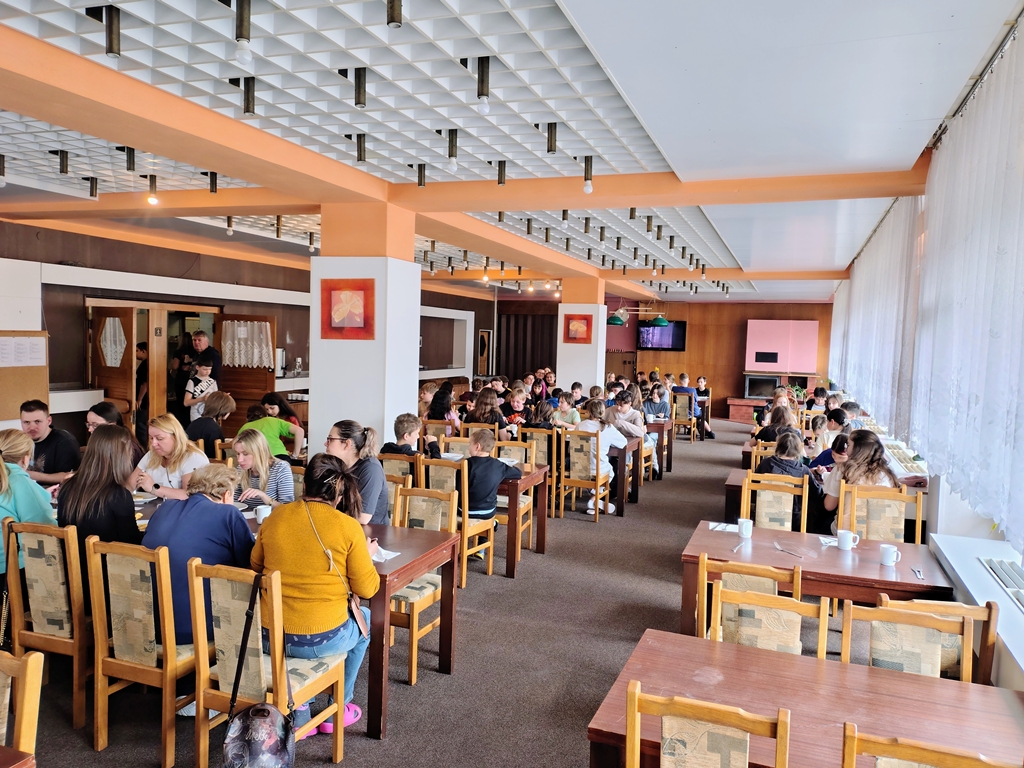 Po dopoledním přesunu přišel zasloužený oběd – svíčková s knedlíkem. A jak se rychle ukázalo, zmizela z talířů téměř kouzlem. Spokojení kouzelníci tak načerpali síly na další část dne.