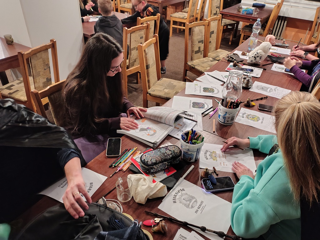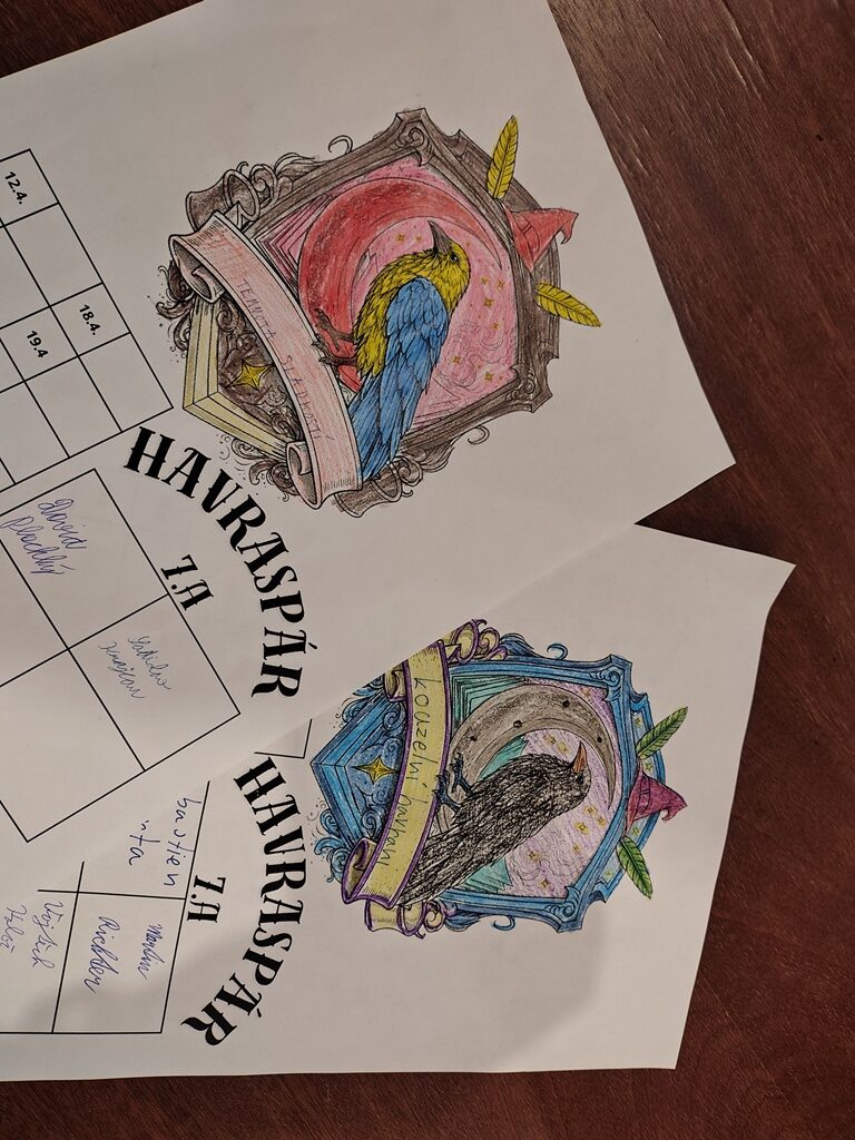 Večer pak vyvrcholil první Kouzelnickou výzvou. Jednotlivé koleje se pustily do tvorby svých vlajek, znaků, motta i vlastního kouzelnického zaříkávadla. Nechyběly ani originální názvy kolejí, které vznikaly s velkou dávkou fantazie a nadšení. Čas však byl neúprosný, a tak bylo domluveno, že práce budou dokončeny následující den, kdy koleje své výtvory slavnostně představí.