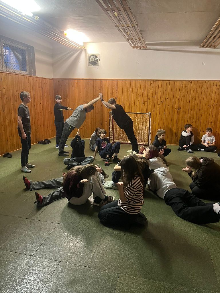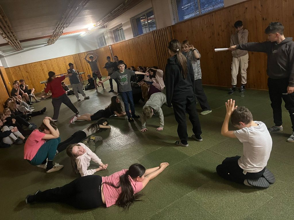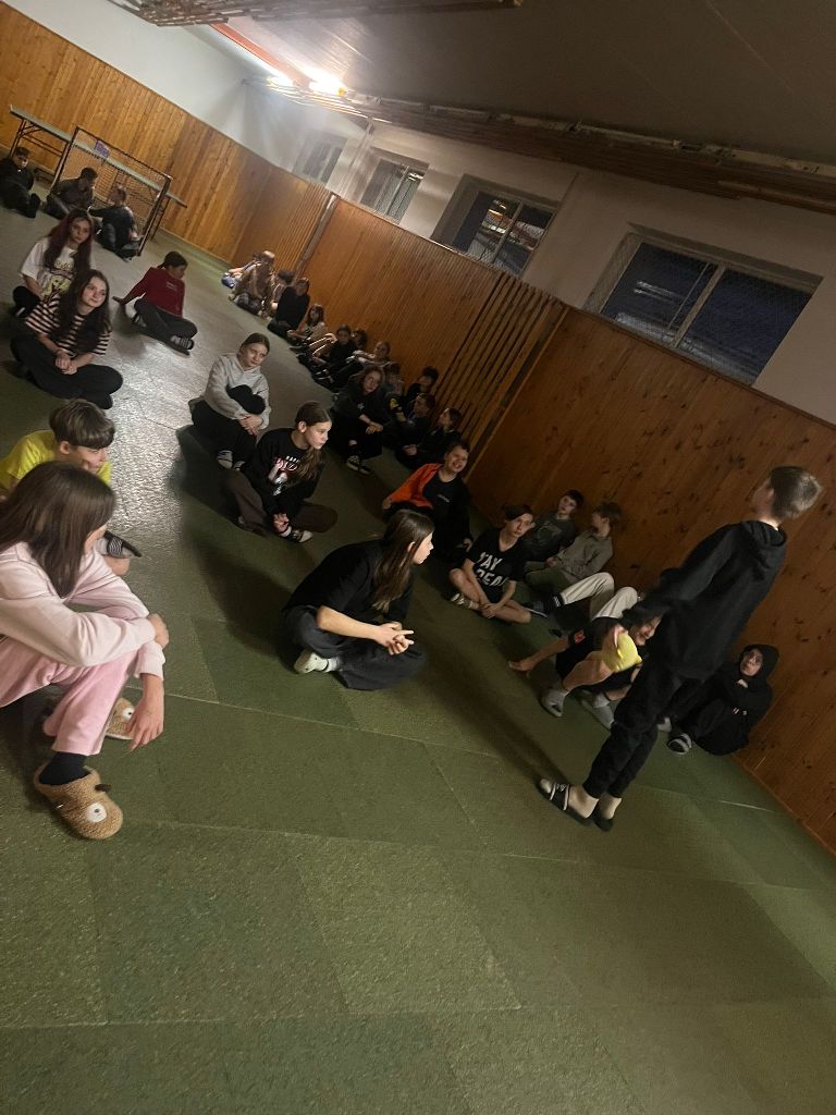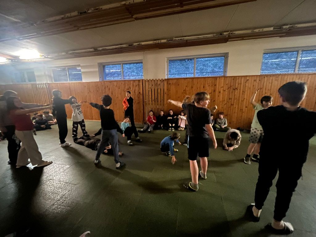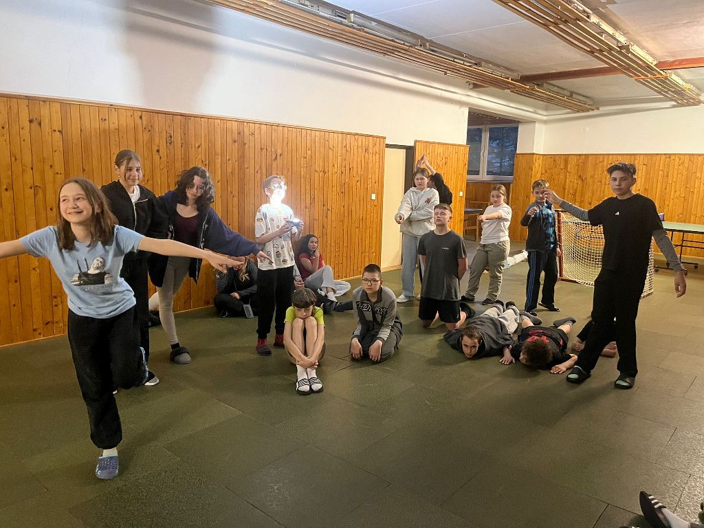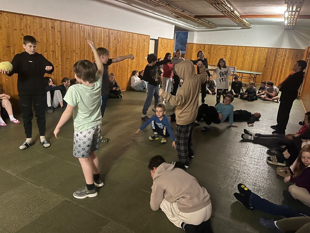 Před hlavním večerním programem si však kouzelníci vyzkoušeli ještě jednu zábavnou a týmovou aktivitu – Živou abecedu. Děti ze svých těl vytvářely jednotlivá písmena abecedy, a ukázalo se, že nejen kouzla, ale i lidská fantazie a spolupráce dokážou vytvořit nečekané tvary. Některá písmena byla jasná na první pohled, u jiných bylo potřeba zapojit pořádnou dávku představivosti.