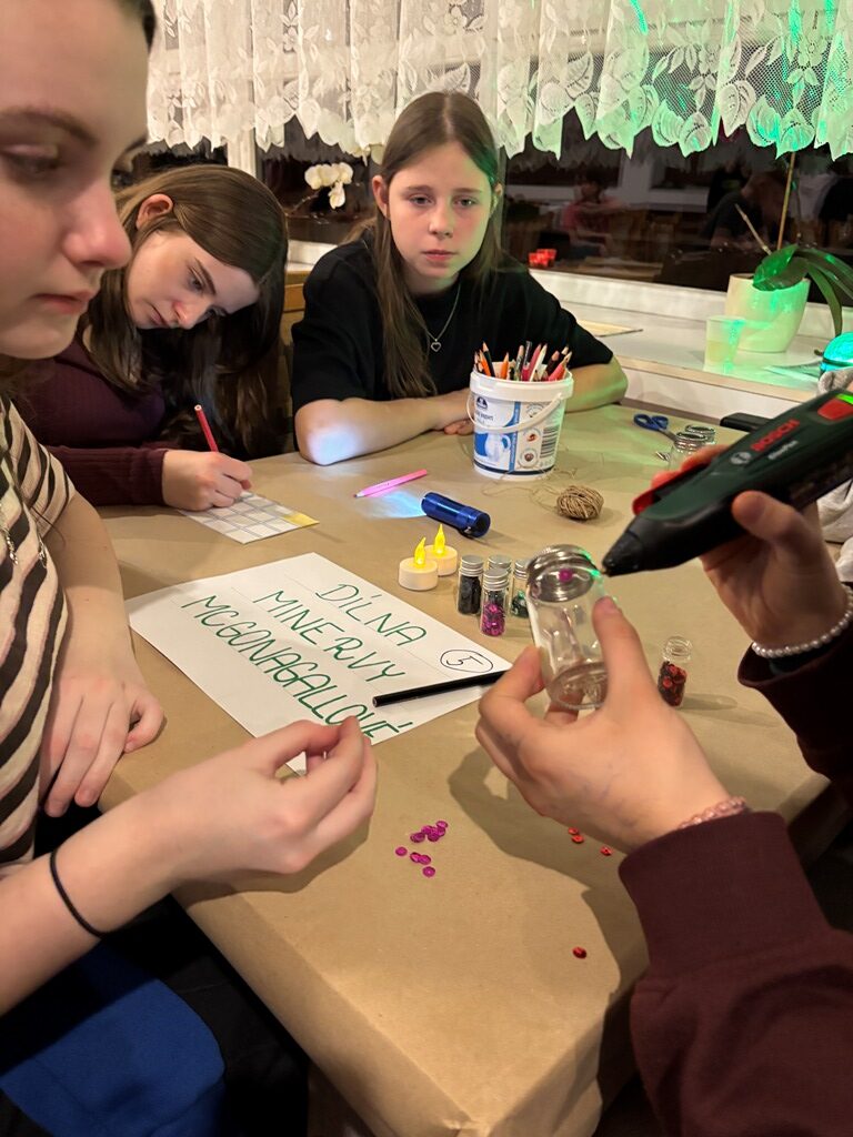 Během večerní výzvy mladí kouzelníci poznávali tajemné ingredience, sbírali je v terénu, míchali lektvary podle přesných receptů, vyráběli vlastní lahvičky a nakonec vytvořili i svůj originální lektvar včetně jeho příběhu. Některé výtvory byly tak přesvědčivé, že by si možná zasloužily místo v učebnicích pokročilé magie.