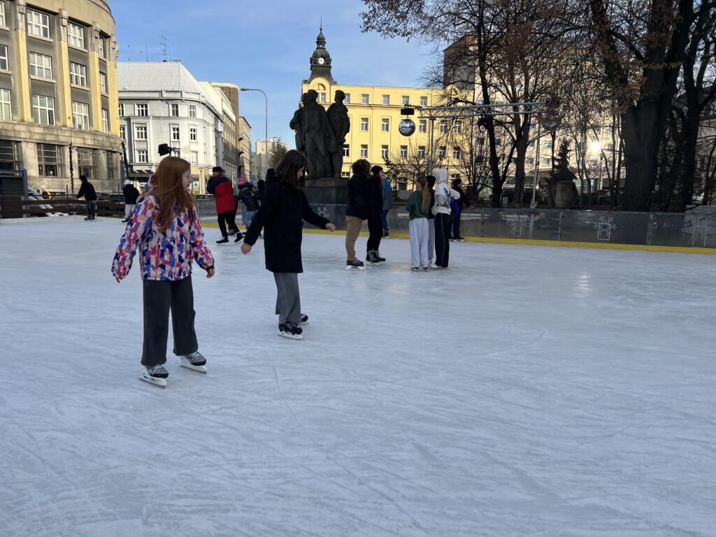 Dne 17. 12. 2025 se třída 6.A vydala na kouzelné vánoční bruslení na náměstí Dr. E. Beneše v samotném centru Ostravy. Žáci si zde pod vedením učitele osvojovali základy bruslení, zkoušeli udržet rovnováhu a s každým kolem získávali větší jistotu i radost z pohybu. Celou akci doprovázela příjemná, sváteční atmosféra vánočních trhů na Masarykově náměstí. Společné sportovní dopoledne bylo plné dobré nálady a krásných zážitků, na které budou žáci jistě rádi vzpomínat.