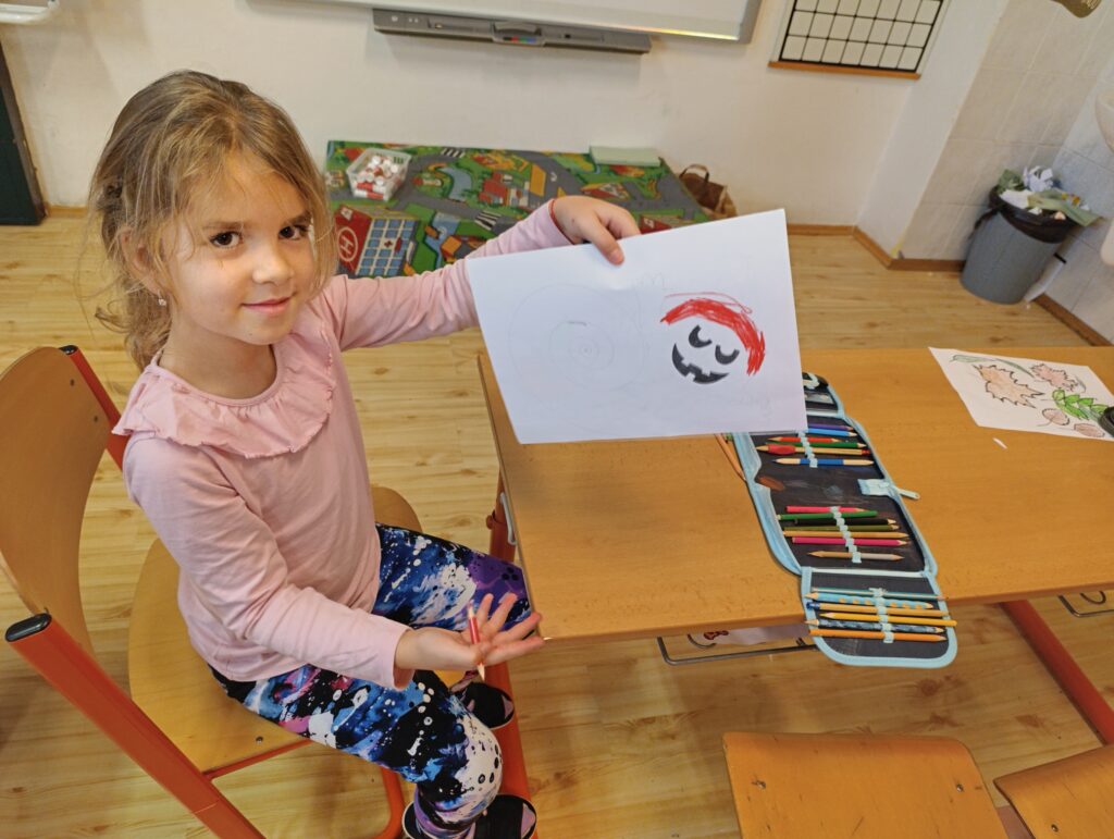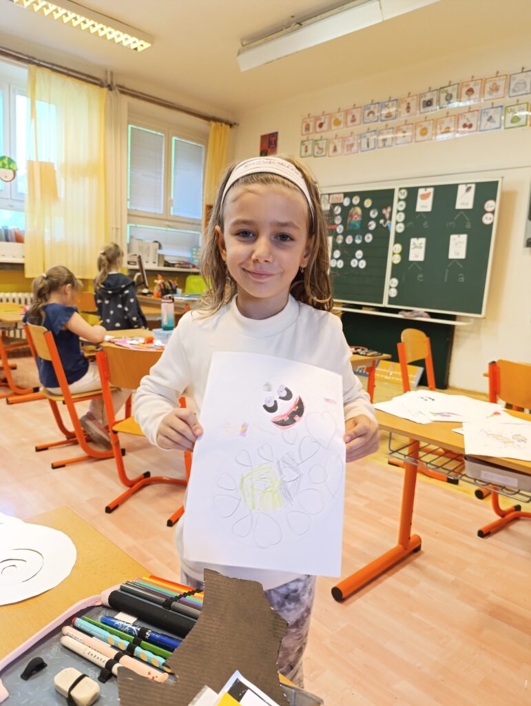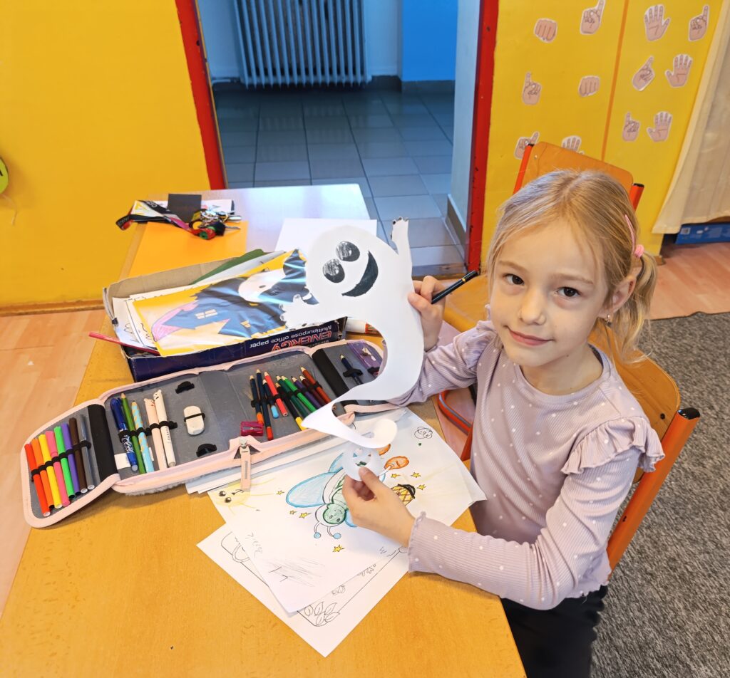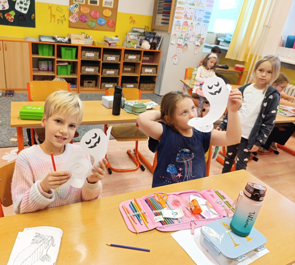 Děti si vystřihly vlastní strašidlo, vymyslely mu jméno a dokreslily oči, ústa, vlasy.