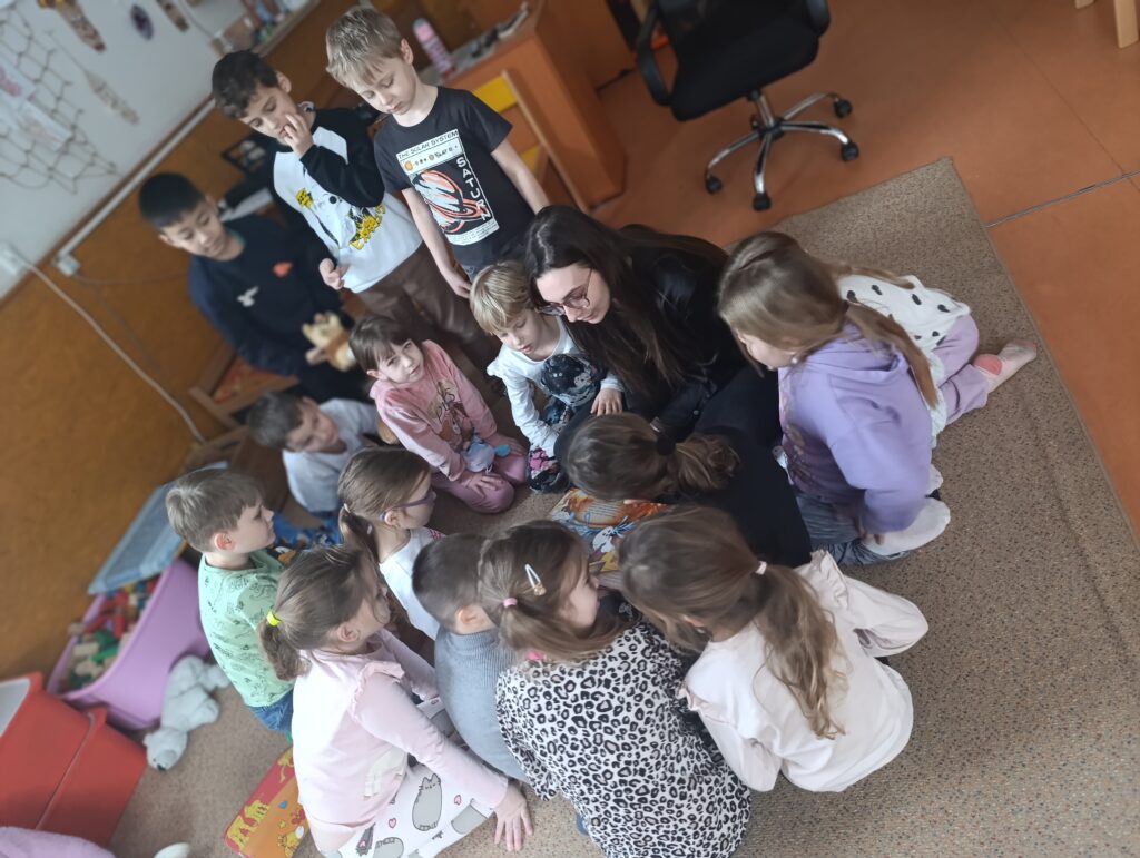 Ve školní družině dnes proběhlo čtení pohádky O třech prasátkách v italštině i češtině. Pohádku dětem představila rozená mluvčí žijící v Ostravě Chiara Biagini, která jim umožnila porovnat rozdíly mezi oběma jazyky.