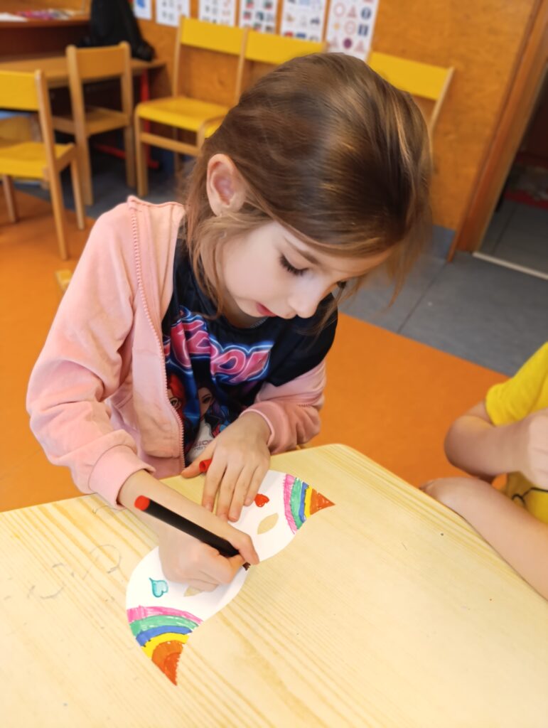 U Motýlků jsme si užili barevný karneval plný tvoření a masek. Děti s nadšením vyráběly klany, zdobily je a připravily překrásné škrabošky.