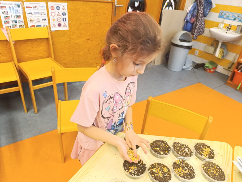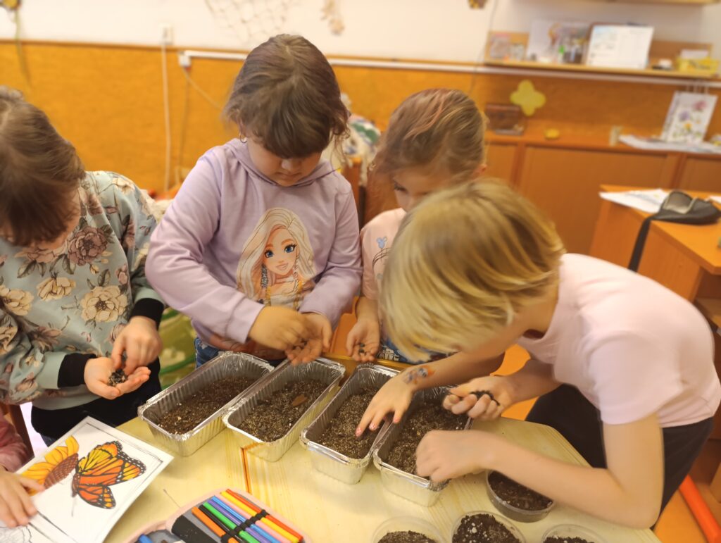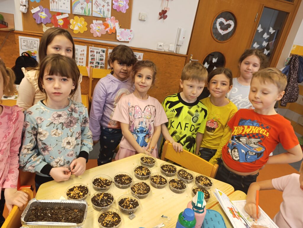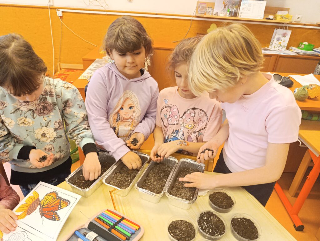 🌱Ve školní družině Motýlci zasadili slunečnice a trávu! 🌻