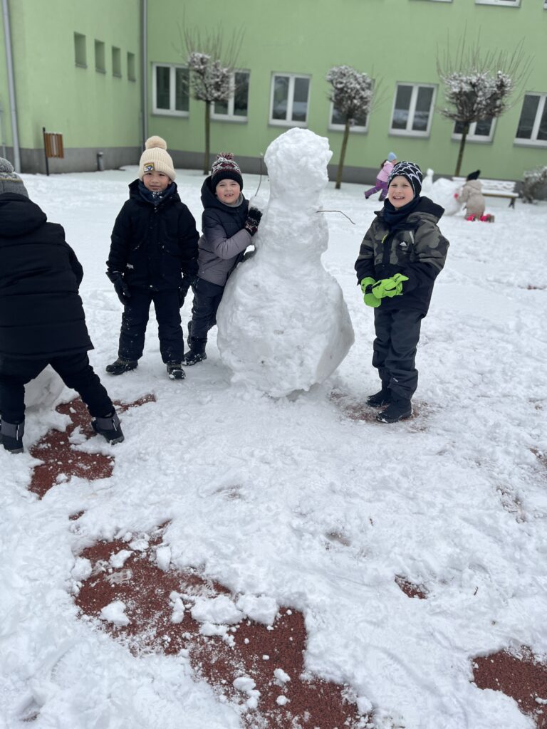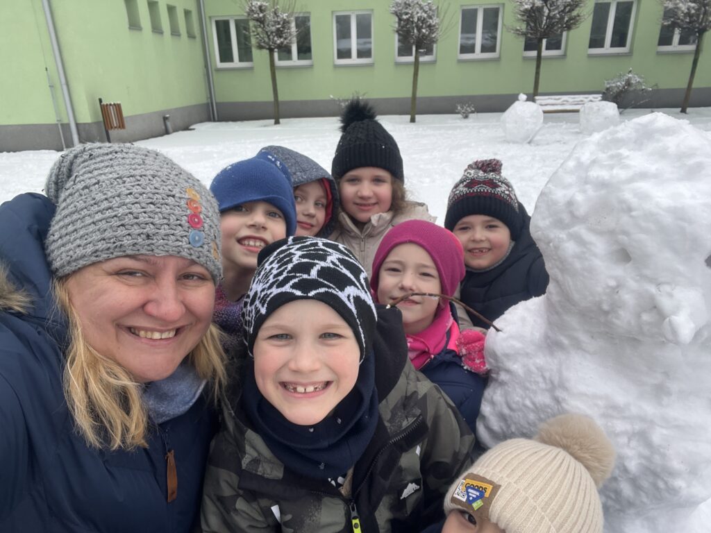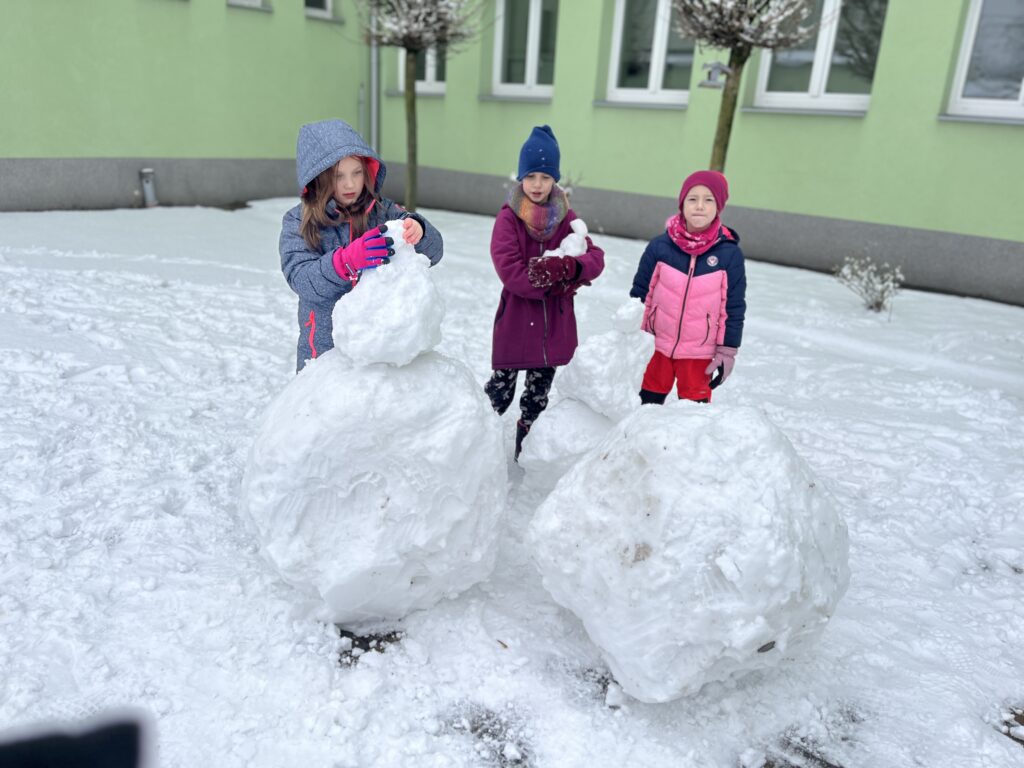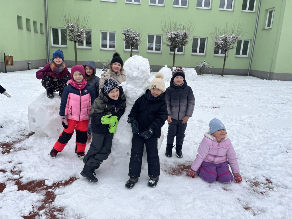 Ve družině jsme si proto vytvořili veselého sněhuláka. Děti pracovaly s chutí a moc se jim povedl.