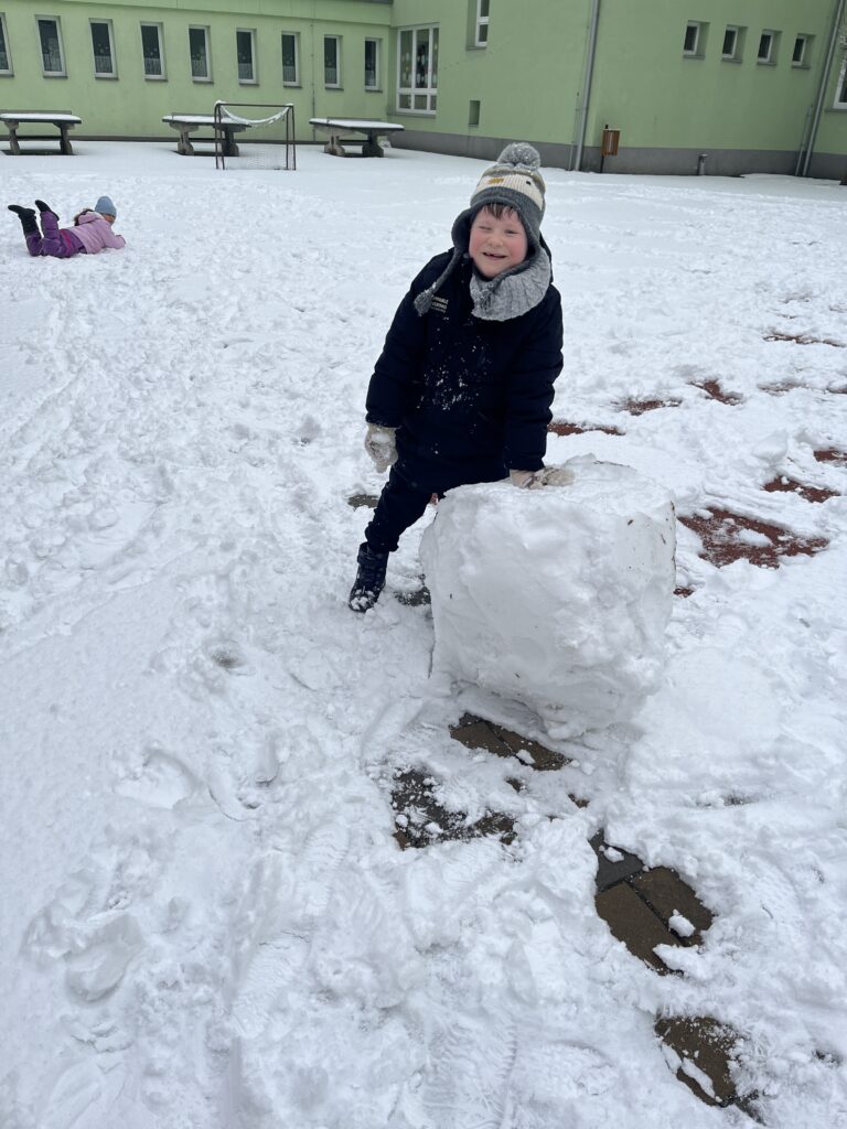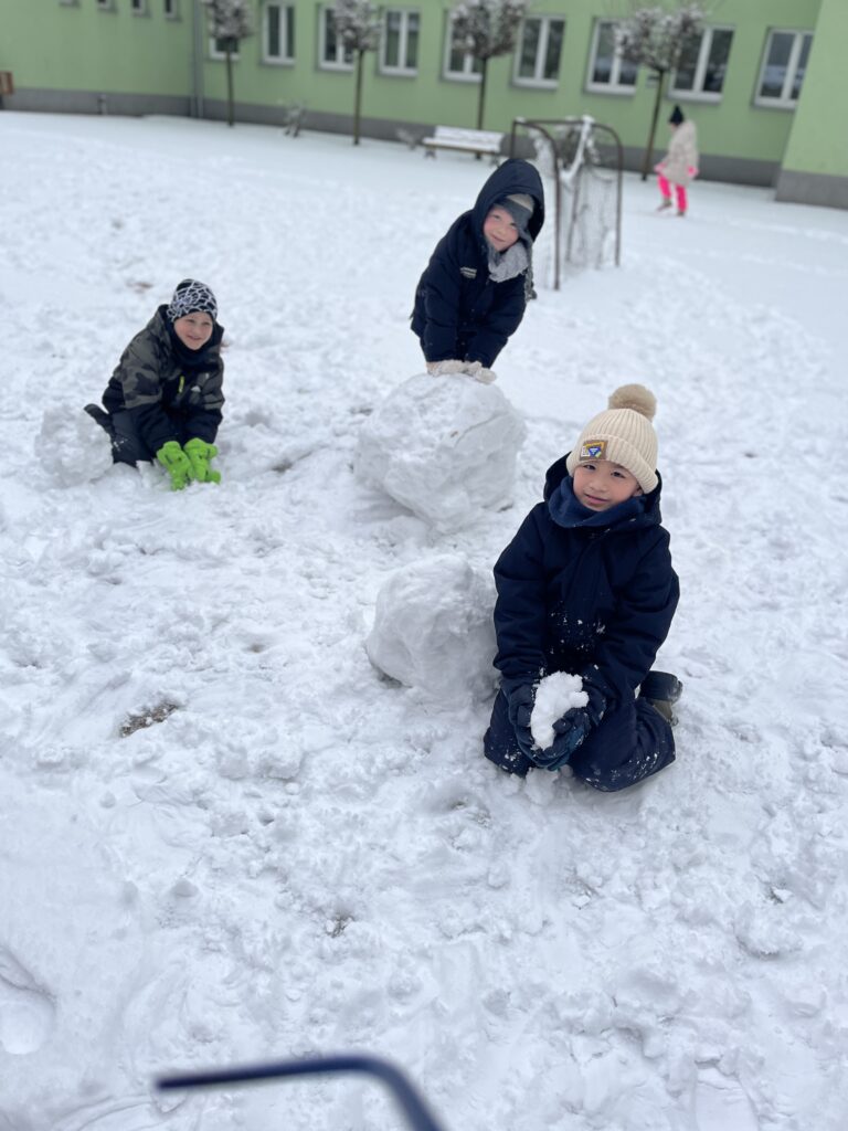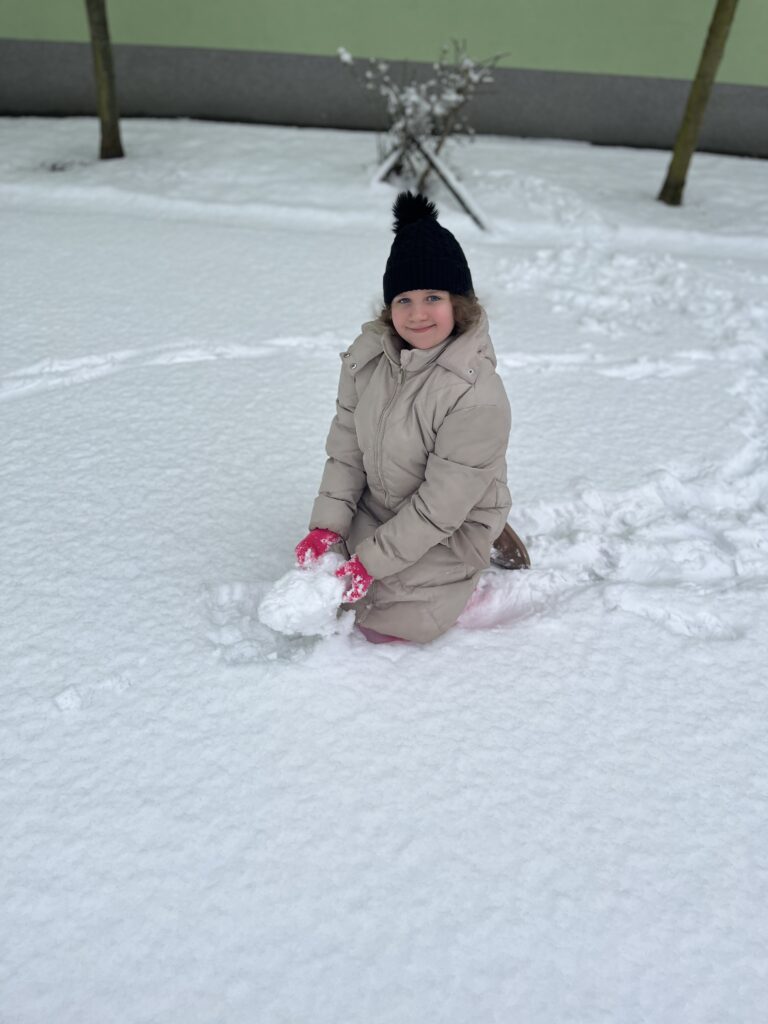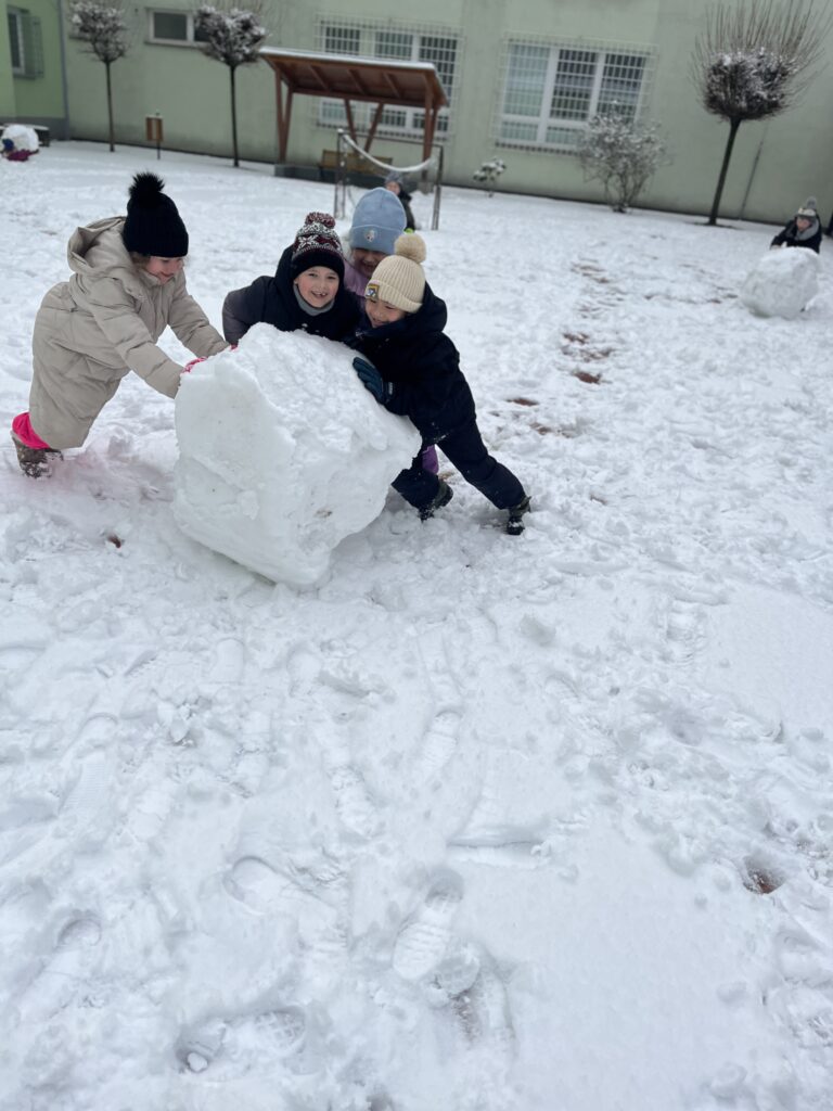 Ve družině jsme si proto vytvořili veselého sněhuláka. Děti pracovaly s chutí a moc se jim povedl.
