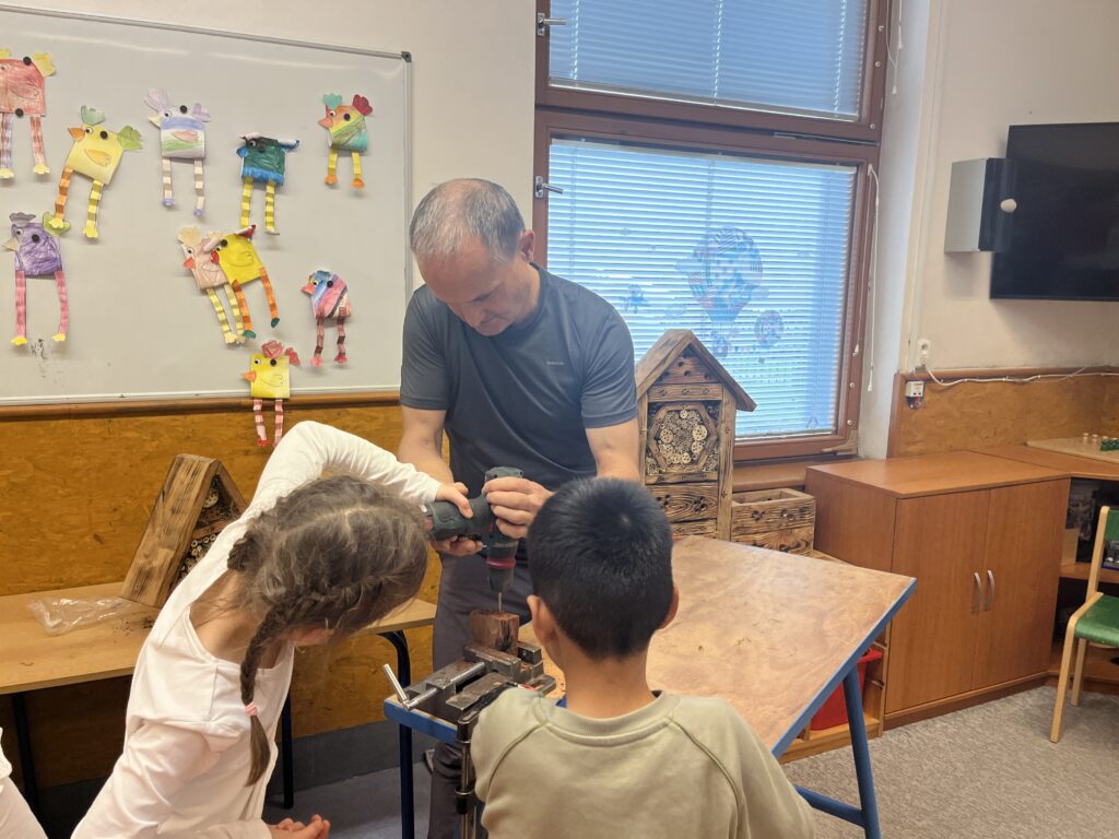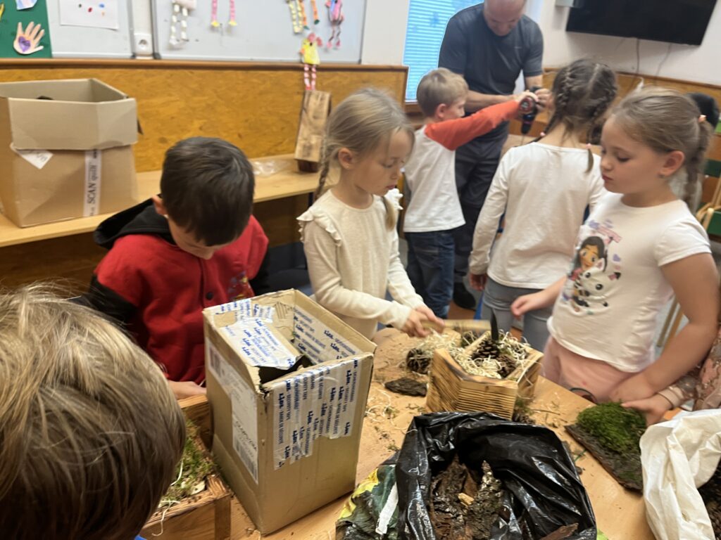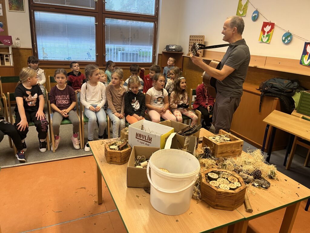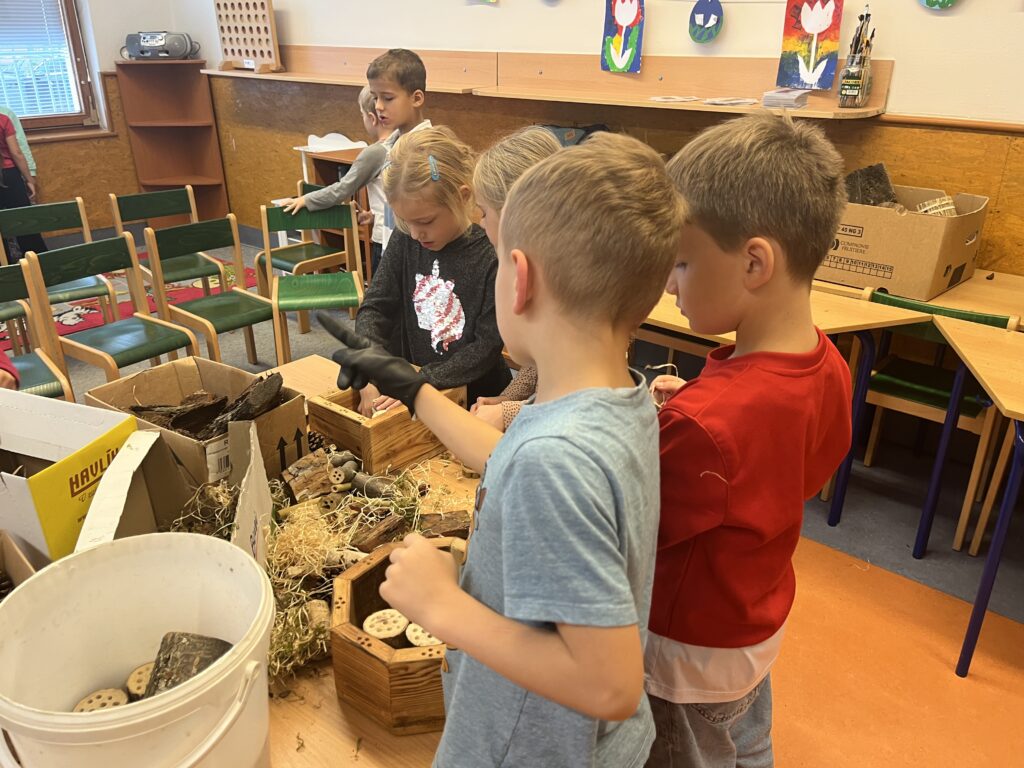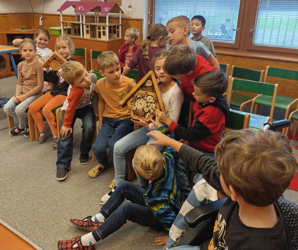 Včera se žáci ve školní družině s nadšením pustily do stavby hmyzího domečku. Nejprve si prohlédly obrázky broučků a povídaly si o jejich životě, poté zazněla i veselá písnička. Nakonec společně z přírodnin vytvořily nový domeček, který bude sloužit jako bezpečný úkryt pro drobný hmyz a připomene dětem, jak je důležité chránit přírodu.