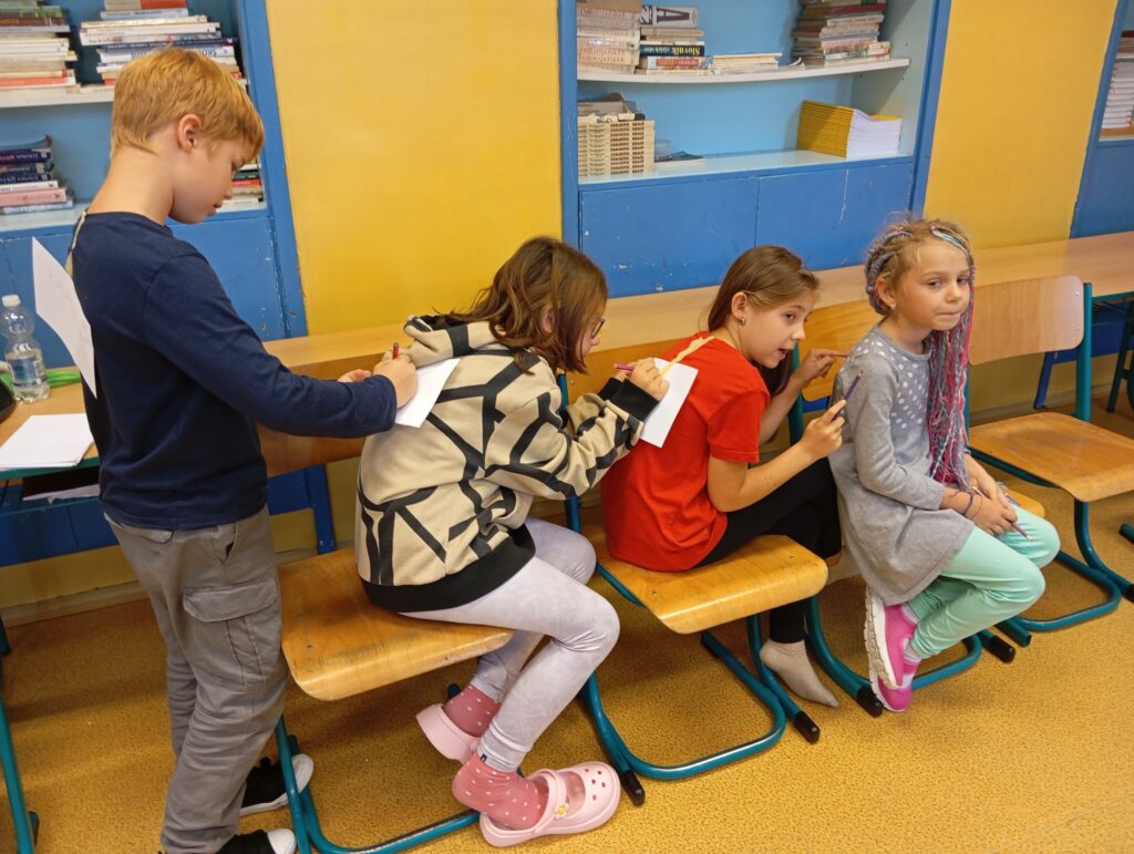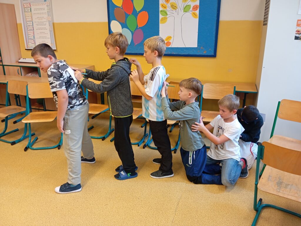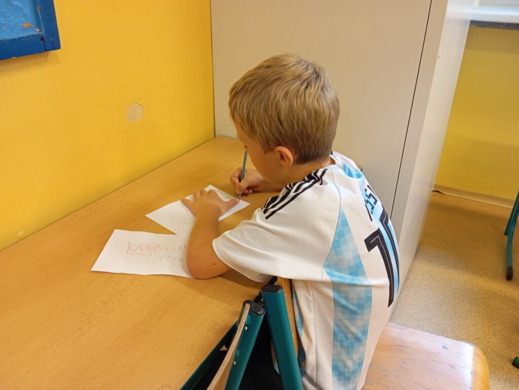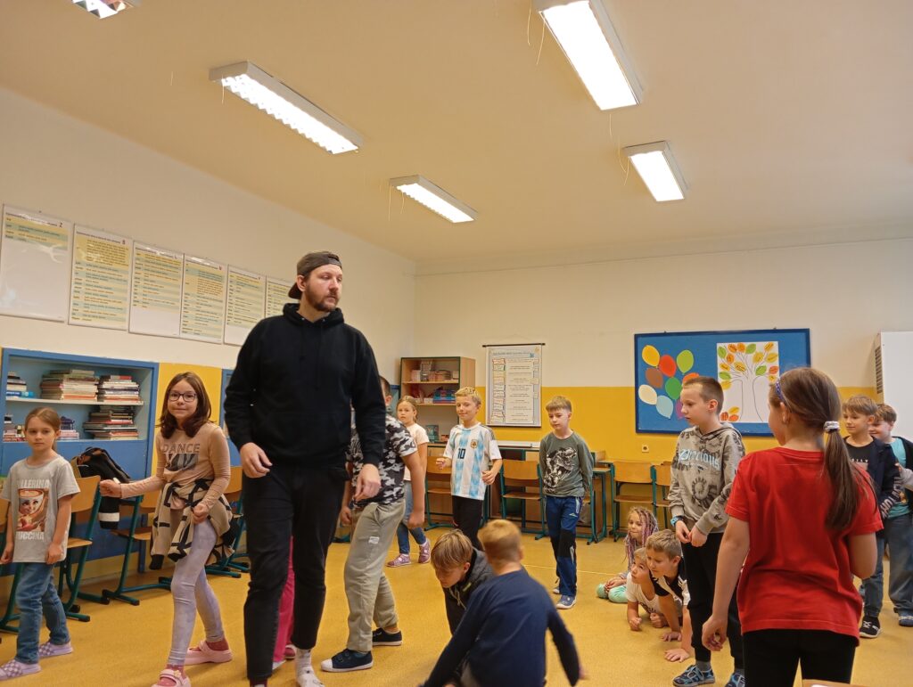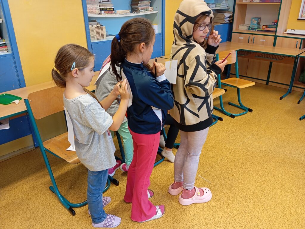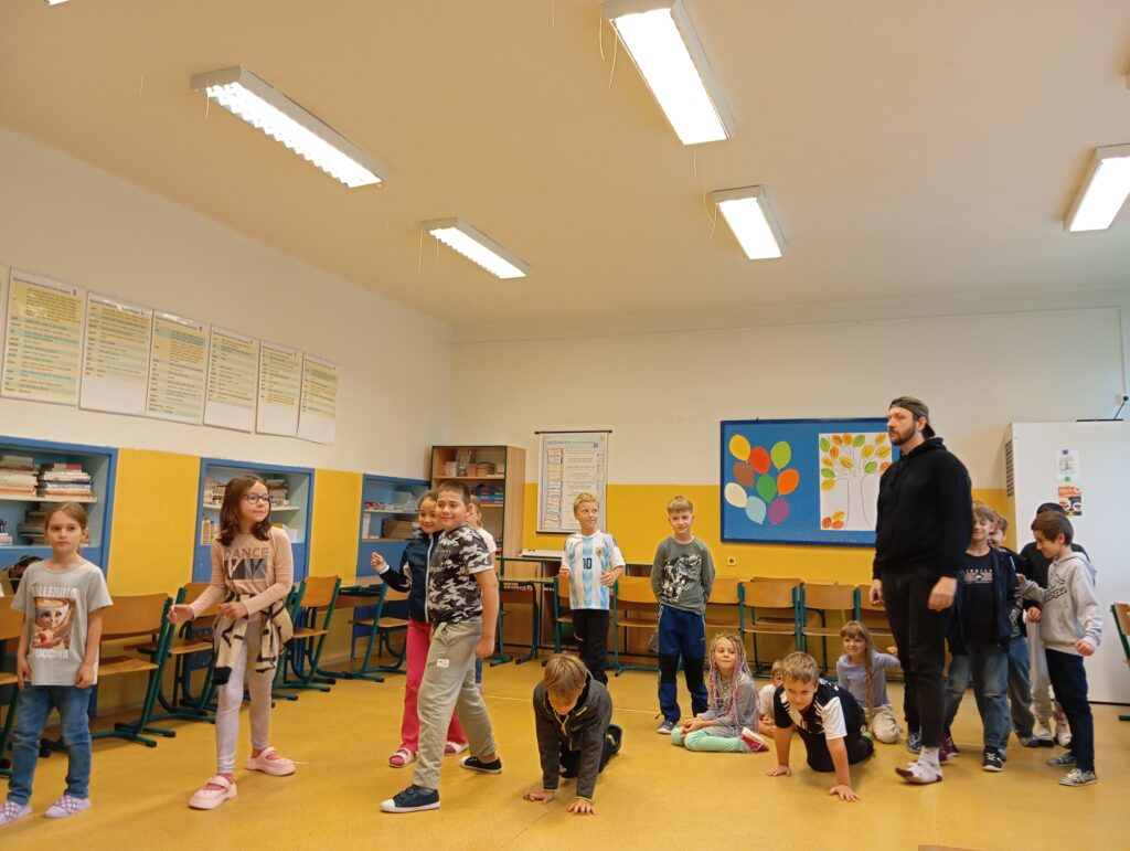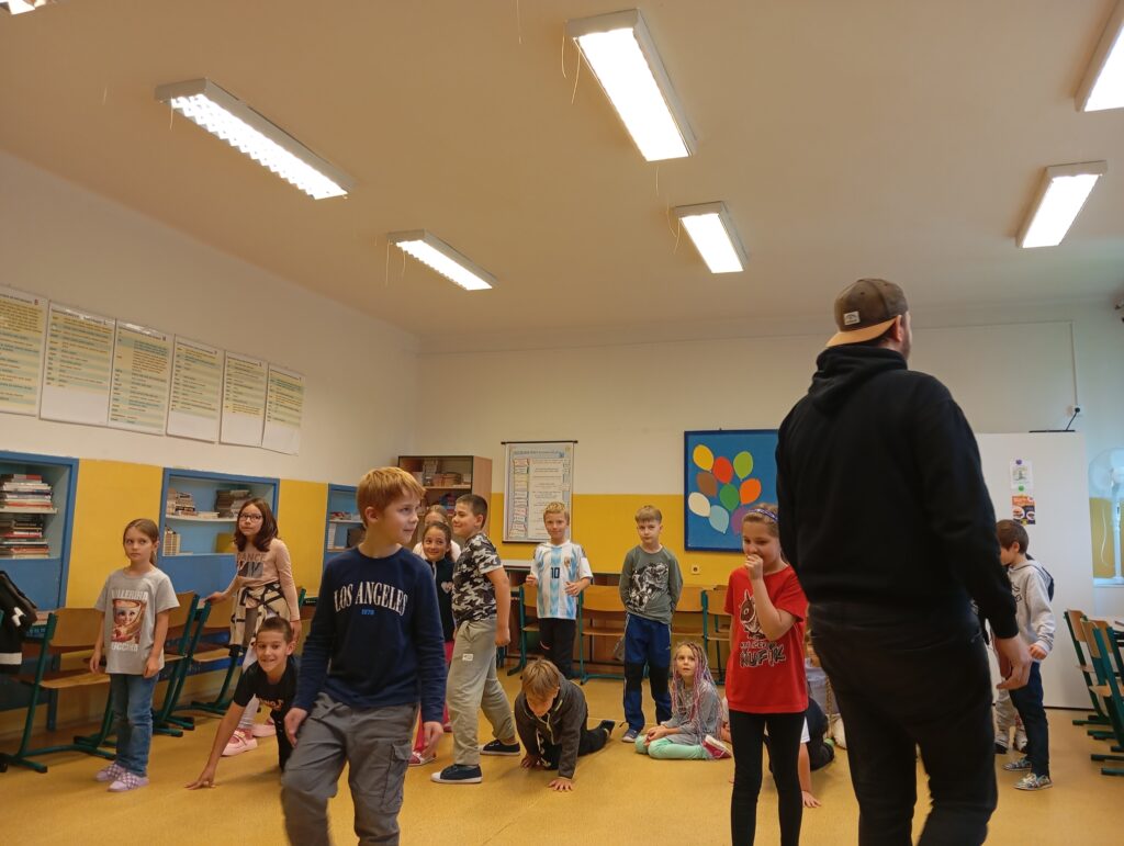 Dne 24. září naši třídu navštívili Jitka a Jindra z Theatr Ludem s programem Včelí kolektiv. Zuzana B. Rozdělili jsme se do skupin. Nikita S. Ve Včelím kolektivu jsme si hráli na včely a Jindřich byl sršeň. Nikolas P. Když se na nás koukal, nesměli jsme se hýbat. Jirka R. Když jsme se pohli a sršeň nás viděl, tak jsme si měli sednout. Beáta P. Byli jsme mrtví. Jirka R. Když byl sršeň otočený, tak jsme měli utíkat. Patrik G. Měli jsme vzít zrnko. Mirka Č. Potom jsme museli jít s tím pilovým zrnkem zpátky do včelího ráje. Radan K. Když ten sršeň někoho chytil, museli jsme ho zachránit. Václav A. Mě nejvíc bavilo, že jsme zachraňovali Hanku. Veronika V. Otrávené včely zachránili a to mě nejvíc bavilo. Hana L. V zrníčkách pilu byly nápisy poslání včel. Rozdělovali jsme se podle poslání včel. Názvy včel: létavky, krmičky, stavitelky, kojičky, čističky. Beáta P. Já jsem byl skupina stavitelky a byl jsem s Vaškem a Ráďou. Matouš H. Pak jsme si říkali, co by se stalo, kdybychom nebyli. Mirka Č. Uvědomili jsme si, že kdybychom tady nebyli, tak by polovina včel nepřežila. Elizabeth P. Ještě jsme psali, co máme rádi ve třídě nebo nemáme rádi. Uliana T. Měli jsme napsat kamarádovi, jaký je. Tomáš S. Nejvíc se mi líbilo, jak jsme malovali orgány. Nikola G. Třeba srdce, ruku, nohu, oči, pusu. Já jsem kreslil srdce, protože jsem kamarádský. Nikolas P. Z jednotlivých částí těla jsme vytvořili společný organismus naší třídy. Každý v něm je potřebný. Slávka B.